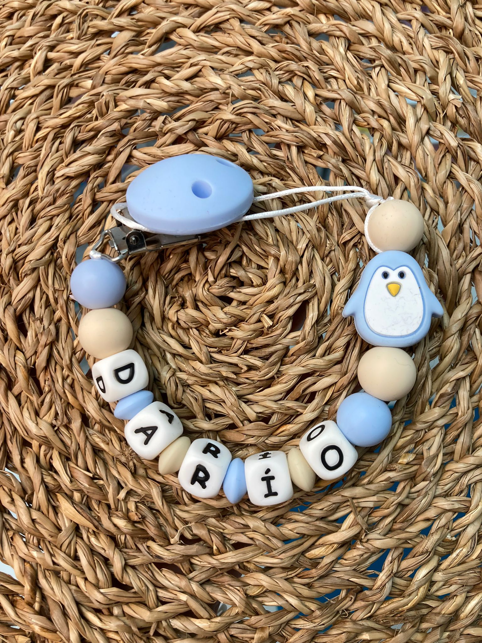 Chupetero modelo PINGU. Debe su nombre a la figura de pingüino que lleva en la punta, disponible varios colores. ¡Contáctanos y hablamos!