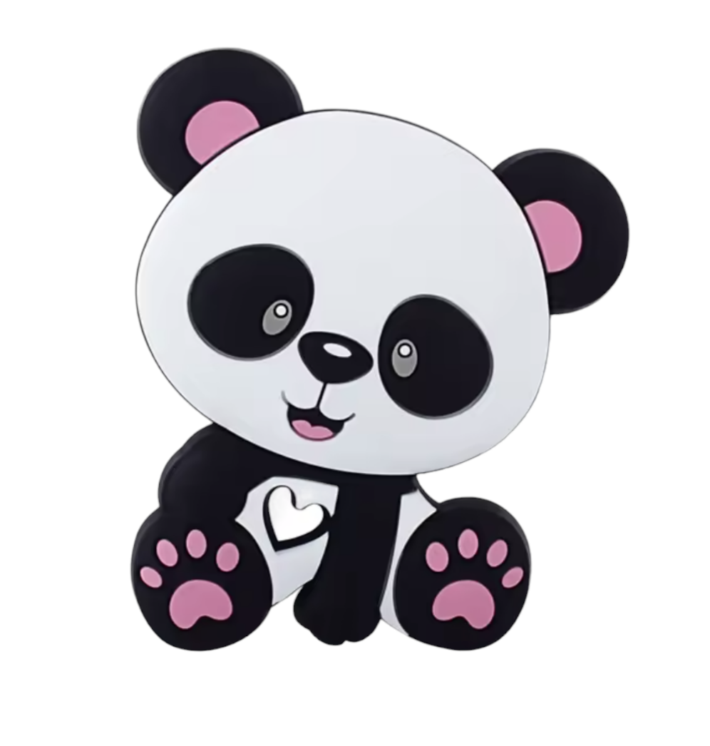 Mordedor para bebé en forma de adorable osito panda. Silicona de grado alimenticio. Juguete flexible para morder. Se puede meter en la nevera.